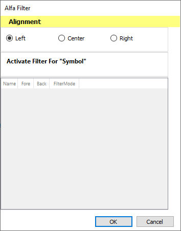 New: under the FilterMode column in the Alfa window, the following options are available for selection:
