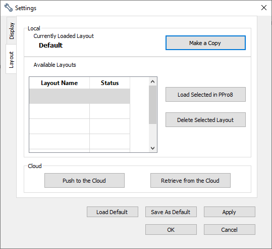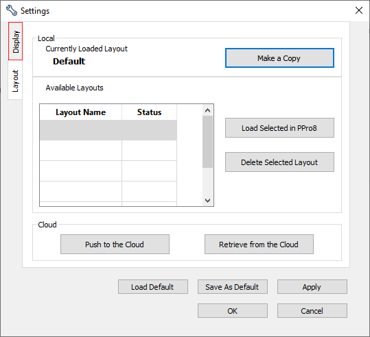 - In the Cloud section, click the Push to the Cloud button to upload all local layout changes to the Cloud. Click the Retrieve from the Cloud button to download all layout information from the Cloud, which will overwrite any locally made changes to the layout.