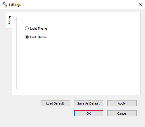5. To switch back to Light Theme, open Display Settings again, click the Light Theme option, and then click OK.