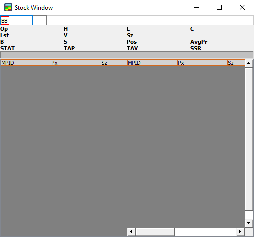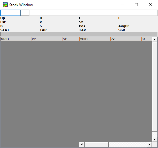 2. An empty Stock Window appears.