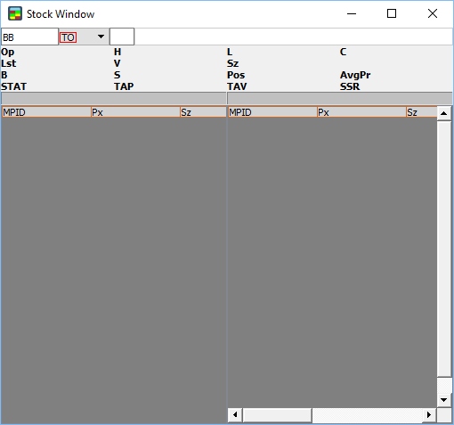 5. The Stock Window populates with information about the symbol, in the header, Lv1, and Lv2.