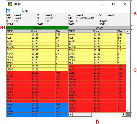 - MPID (Market Participant Identifier): the shortened name of the quoted market/ECN or book.