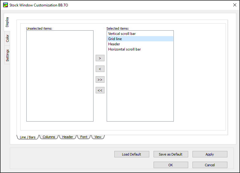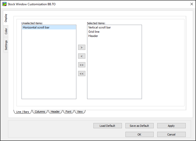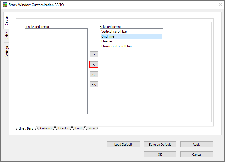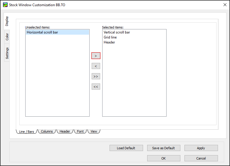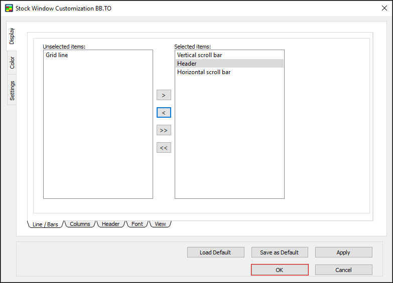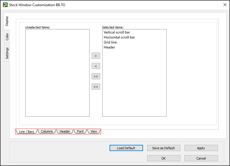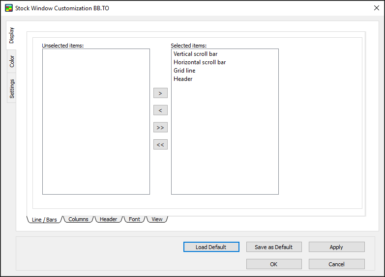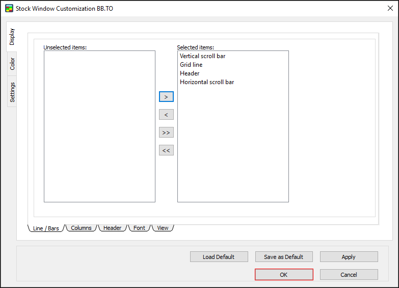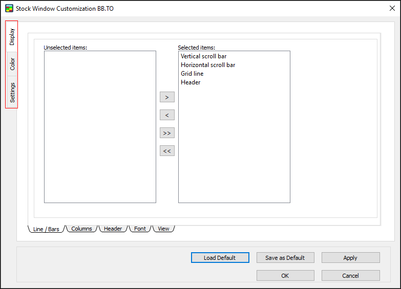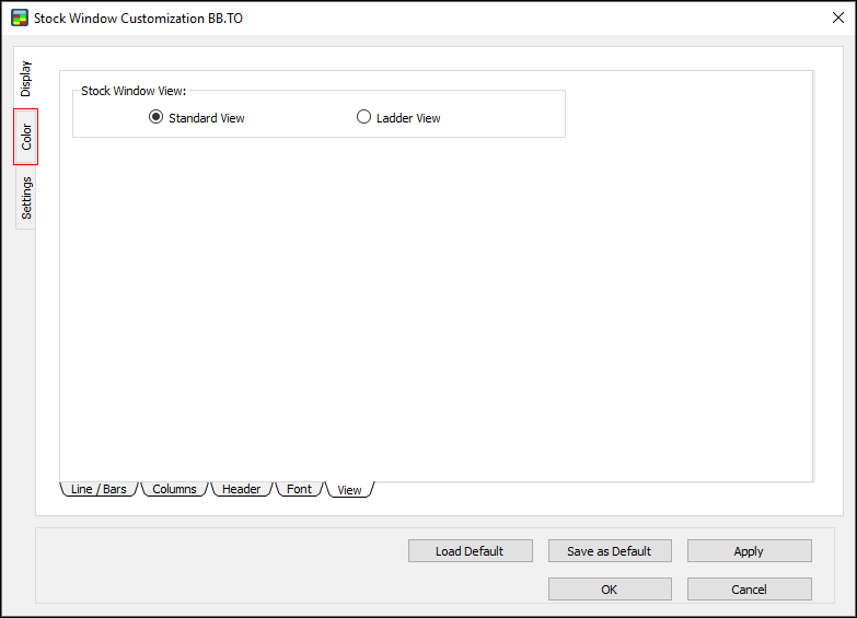 1. In the Stock Window Customization Dialog, go to Level 1 Colors and select “Apply for Both Sides.”