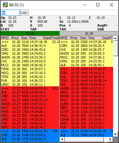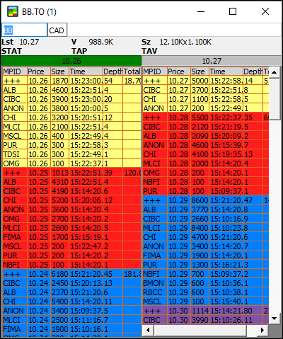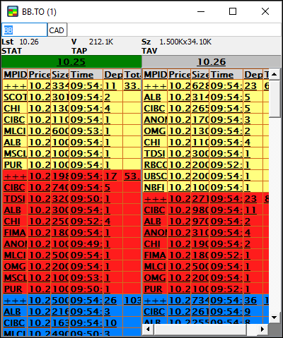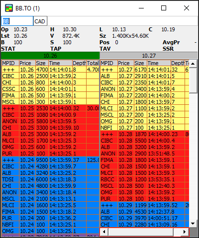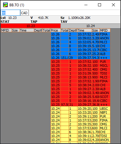 - Total: the cumulative number of shares per price level, available only on the consolidated (+++) book.