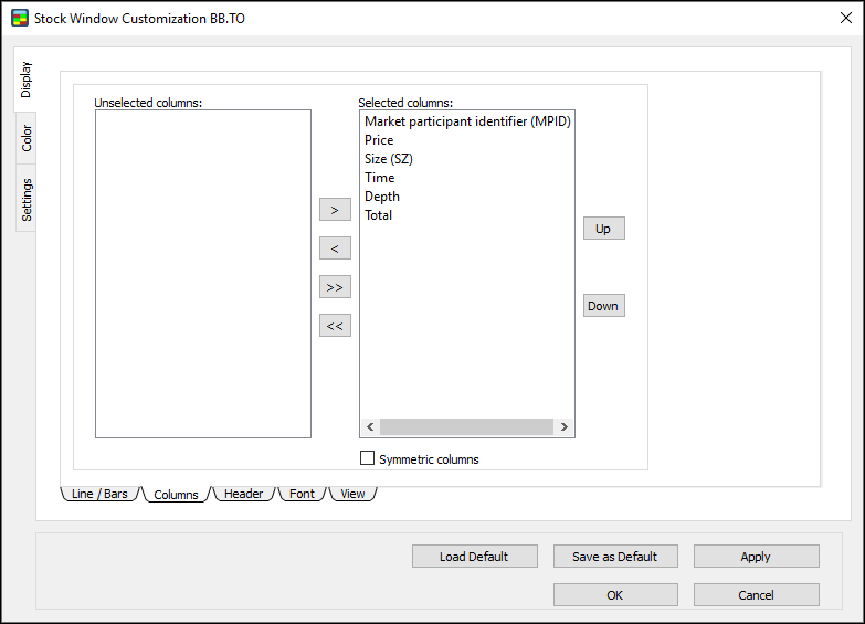 1. Right-click a column heading, such as MPID, Price, Size, Time, Depth, or Total, in the Stock Window.