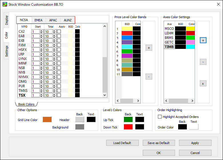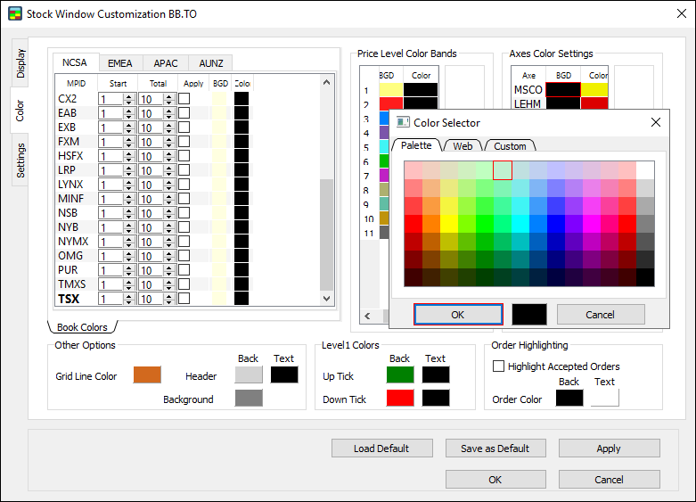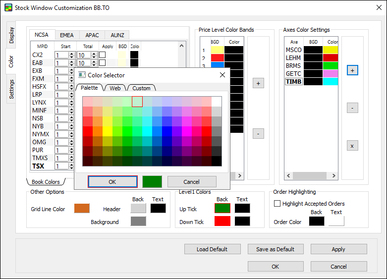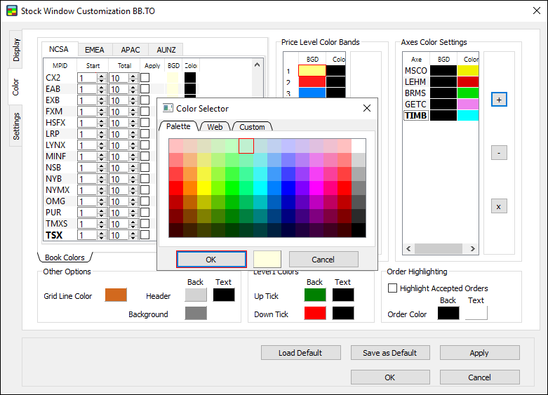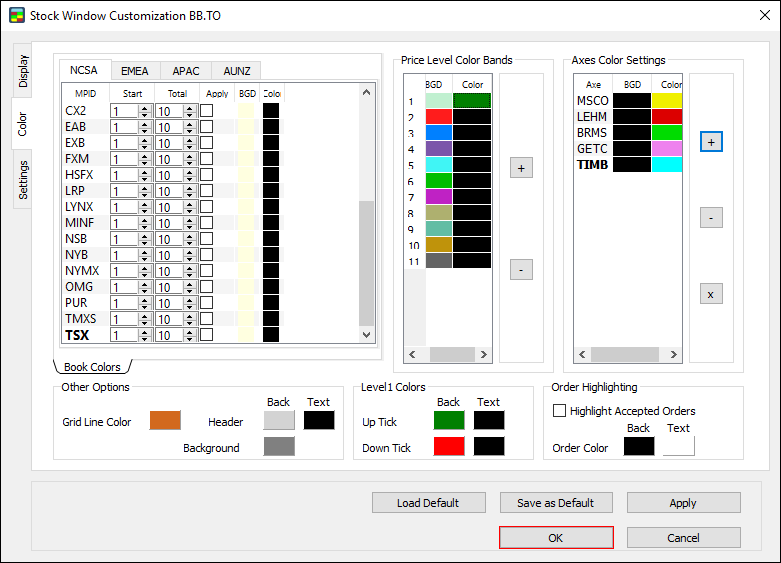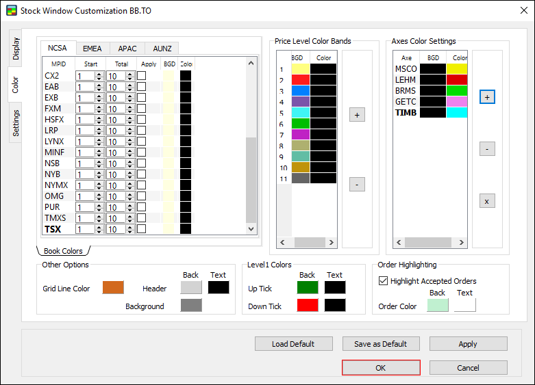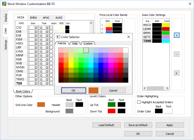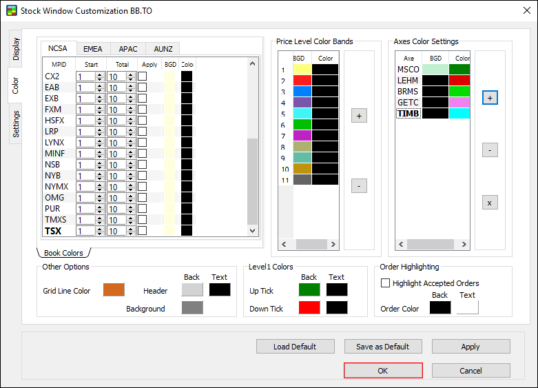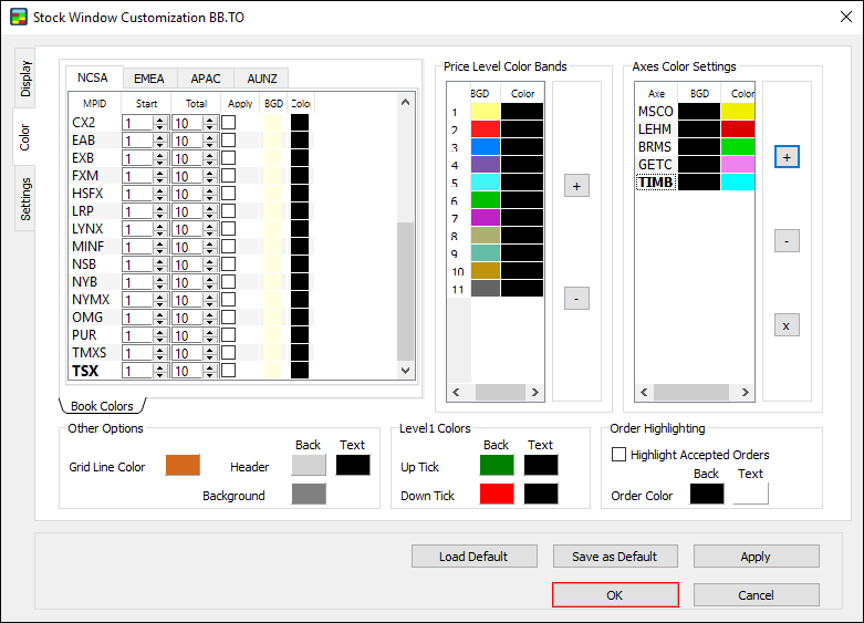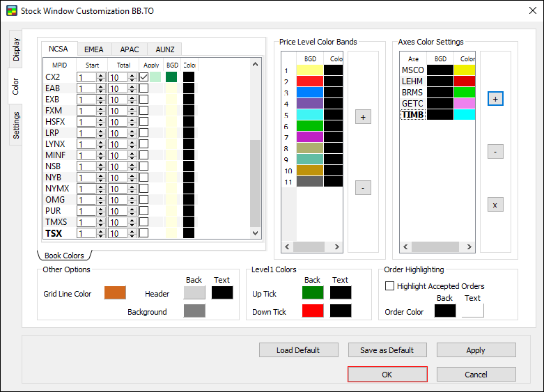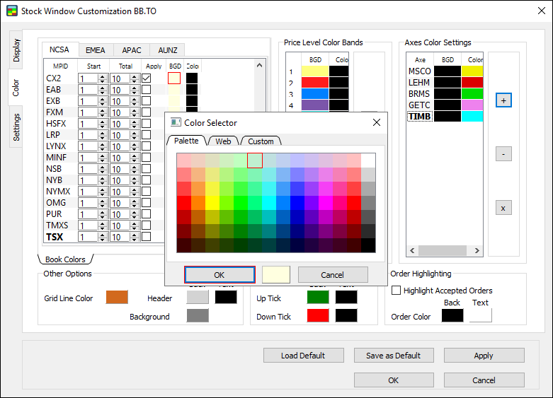 Note: make sure to set Order highlighting before starting your trading activity. The Stock Window won’t highlight orders made prior to setting Order highlighting.