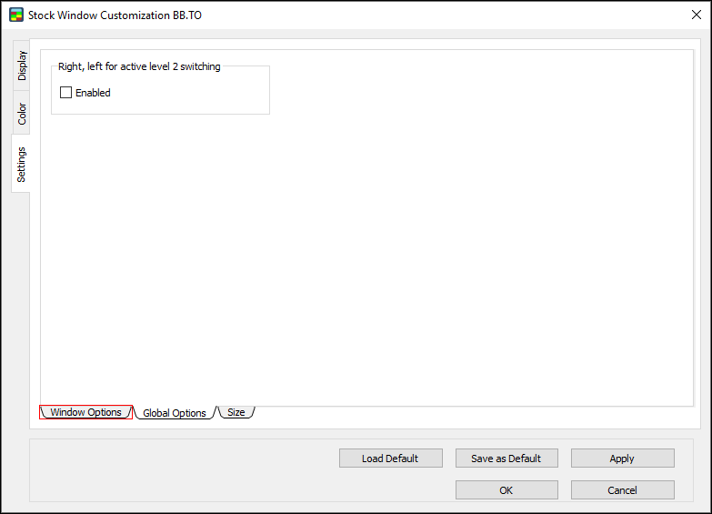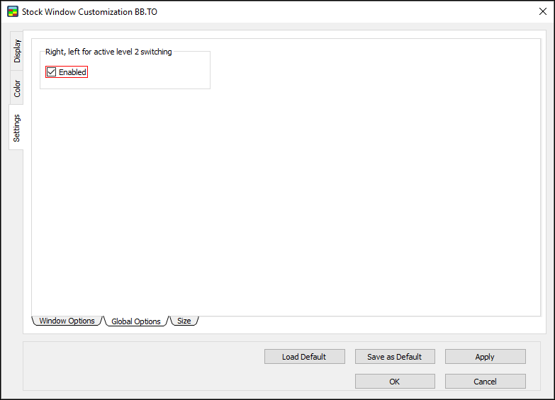 - Right, left for active level 2 switching: if this option is Enabled, clicking the Right and Left Arrow keys moves between multiple Stock Windows.