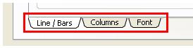 1.1c) DISPLAY Tab: Contains 3 sub-tabs; Lines/Bars, Columns, Header, Font.