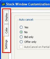 Order entry is also facilitated on the stock window through the use of hotkeys. The hotkeys are fully customizable in KeyboardSetup