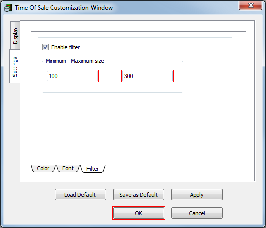 Use the Settings window to customize how data is displayed in the Time of Sales window.